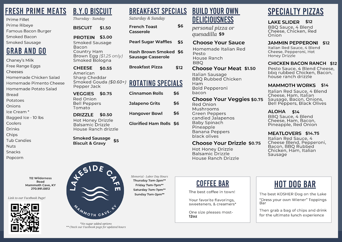 Welcome to Lakeside Cafe at Nolin Lake, a cozy gem nestled at 112 Wilderness Rd, Mammoth Cave, KY. This charming cafe is a culinary delight, renowned for its enticing menu offerings that cater to breakfast lovers and lunch enthusiasts alike.
